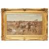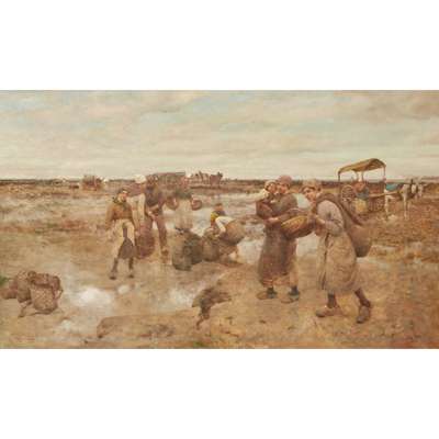 Note: Robert McGregor is renowned for his pioneering approach in the genre of work scenes of rural life. The genre acquired a dramatic popularity in France, where it was represented by Gustave Courbet and Jules Bastien-Lepage, however it hadn't reached Britain until the late 1870s. McGregor's simple pastorals are notable for a unique combination of the French influences on the one hand, and the artist's loyalty to the old traditions of the Scottish painting on the other. Among his most prominent works are The Knife-Grinder (1878), now in the McManus Museum, Dundee, and Gathering Stones (1879) in the Glasgow Art Gallery and Museum.