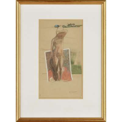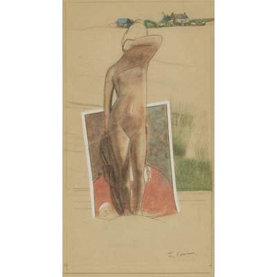 Signed, pencil and coloured chalk on brown paper