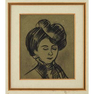 Fergusson's flâneur approach to life and painting translated perfectly to Paris, when he decided to move to this artistic centre in 1907. It is from this period that many of his characteristic elegant conté sketches of the figures of Parisian café culture date, as Fergusson participated in this scene and captured the personalities he met and observed there - the elegant ladies in elaborate hats, suited and moustachioed gentleman, even musicians with their instruments.