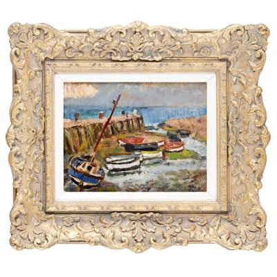 Perhaps the best known of these paintings is Summer Day Largo now in Kelvingrove Art Gallery, and a similar work was sold by Lyon & Turnbull in 2016. This painting however features more detail in the boats and a less azure sea, altogether more typical of the region.