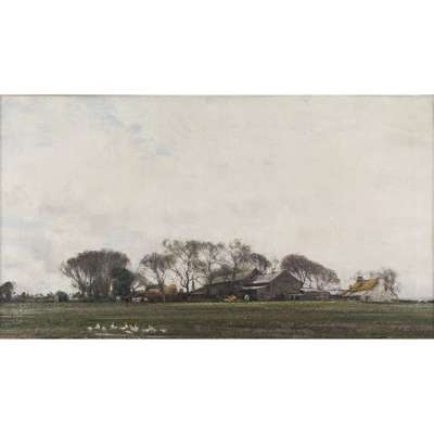 GEESE AND FARM BUILDINGS