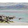The isle of Iona, off the west coast of Scotland, became an inexhaustible source of artistic inspiration, as well as a place of solace and peace. Cadell returned every summer from around 1912 to 1933, and encouraged fellow Scottish Colourist, S.J. Peploe to join him, evidence of his deep and long-standing infatuation with the stunning light and landscape of this special, spiritual place. The offered painting Iona: Ben More, is not only a beautiful example of his depictions of this 'painter's paradise,' but has an important provenance, coming from the impressive collection of G.W. Service, one of Cadell's earliest and longest standing patrons. Most likely to have been painted from Cows Rock, the piece depicts the distinctive rocky shore, white sands, and clear shallow turquoise waters that so captivated the artist. The painting reflects the artist's talent of capturing the beauty of the island, and ability to impeccably transfer its jewel tones, wonderful light and distinct texture onto the canvas, instantly transporting the viewer to the peace and tranquillity of this sun-drenched scene.