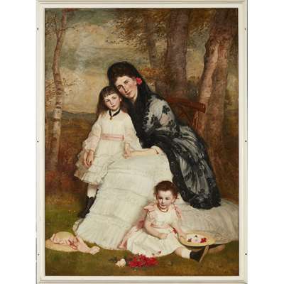 A FAMILY PORTRAIT OF MOTHER AND TWO DAUGHTERS