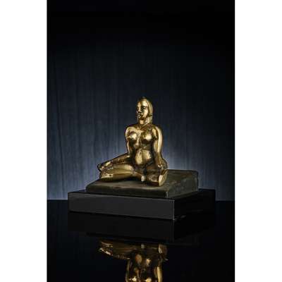 In many ways, the bronze figure of Seated Nude resembles icons of non-Western art - a field by which he was greatly influenced. Recall, perhaps, the ample imagery of sitting Buddha statues that can be found throughout the Asian continent. Cambodia and India, in particular, were of interest to Fergusson whose Celtic roots, he believed, were shared with these peoples. His time working in Paris, Edinburgh and London introduced him to museum collections of objects from foreign lands, and his highly intellectual approach to art certainly expanded his world view.