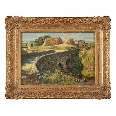 McIntosh Patrick frequently favoured a cultivated landscape to a wilderness. In the examples shown here, his interest in man's relationship with the land is highly evident as is the pervading sense that he was seeking to capture and idealise a transitory moment in the history of our landscape. His work is also a straight forward celebration of a corner of the world with which he was clearly intimately familiar and of which he was extremely fond, and collectors specifically enjoy the 'truth' of his interpretations of the arable east coast landscape.
