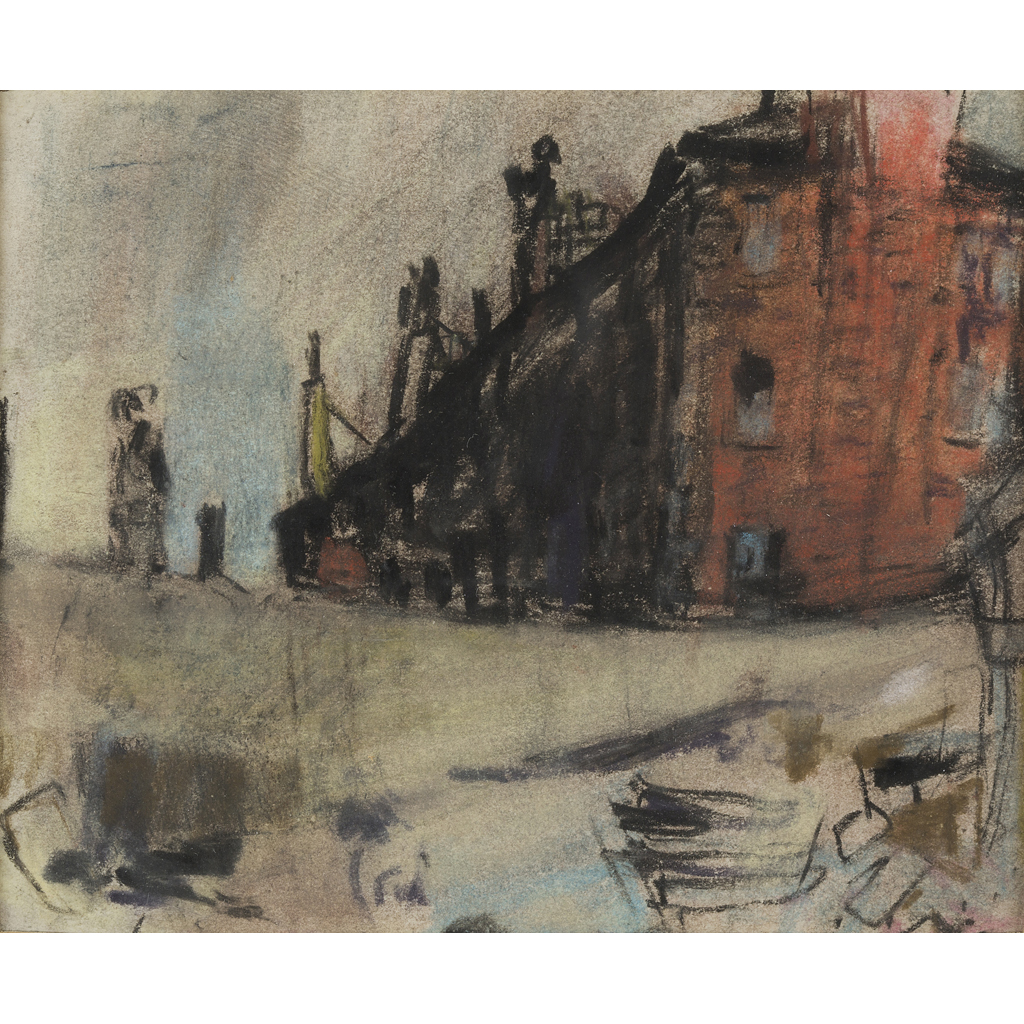 Note: Joan Eardley is recognised as one of the great talents of 20th century Scottish art, capturing the essence of some distinctly Scottish places; from the energy and community of a quickly disappearing urban way of life in the east end of Glasgow, to the drama and brutality of varying weather effects on the small fishing village of Catterline. Lyon & Turnbull are delighted to be offering a collection of fine works by this uniquely expressive, and enduringly popular artist within this auction. The works cover a range of Eardley's key techniques and talents and present a wonderful opportunity to engage with the strength and variety of her work, from bold, thickly applied oil paintings to charming and evocative pastels.