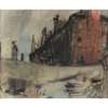 A further four of these artworks take us to the east end of Glasgow, Eardley's other home, and an area that greatly inspired her artistic work. Most famously she worked on a series of sketches of the local children, encouraging them to sit for her in exchange for sweets and comics. Predominantly worked in pastel, here we have an oil sketch of a girl in which the deft brushwork reveals the artist's talent as well as her enduring affection for her subject. In the other offered East End works, Eardley focuses on the structures inhabited by her sitters, boldly capturing the slanting lines and everyday details of this way of life in both pastel and oil. Eardley's colour choices enliven the details amongst the bold dark lines and sections of dense pigment in A Glasgow Tenement, delineating windows in citron and orange and lines of drying laundry in a pale blue-grey. The vibrant colour and energetic brushwork of Glasgow Tenement reveals the beauty Eardley found in this ordinary street, and the specific vitality she saw in the area. This was a way of life that was quickly disappearing, as we can see in Tenement from Wasteground, where the buildings rise beyond the abandoned area we view them from; the building we see will soon go the same way. The communities here live side by side with emptiness and dirt, and Eardley communicates these rough edges but also the joy and connection that she experiences there.