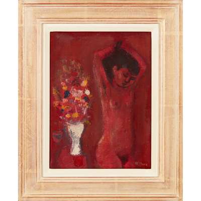 Note: This work was painted during a two month long stay at the invitation of the Norwegian Government at a then recently established Artists' Colony at Ekely on land gifted to to the State by Edvard Munch and where he himself had his Winter Studio. The small nude is a study for a much larger oil that was included in the 1963/4 exhibition '14 Scottish Painters' (and illustrated in the catalogue) shown at The Commonwealth Institute in London and at Kelvingrove Art Gallery in Glasgow . Other artists were Blackadder, Henderson Blyth, James Cumming, Eardley, Gillies, Houston, MacTaggart, Maxwell, Michie, Morrocco, Philipson, Redpath and William Wilson.