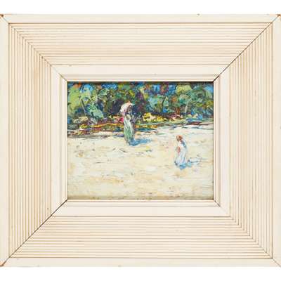 Indistinctly signed, inscribed on contemporary label verso, oil on board