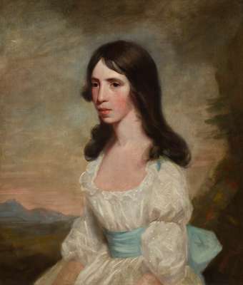 PORTRAIT OF MISS MAITLAND IN WHITE DRESS WITH BLUE SASH