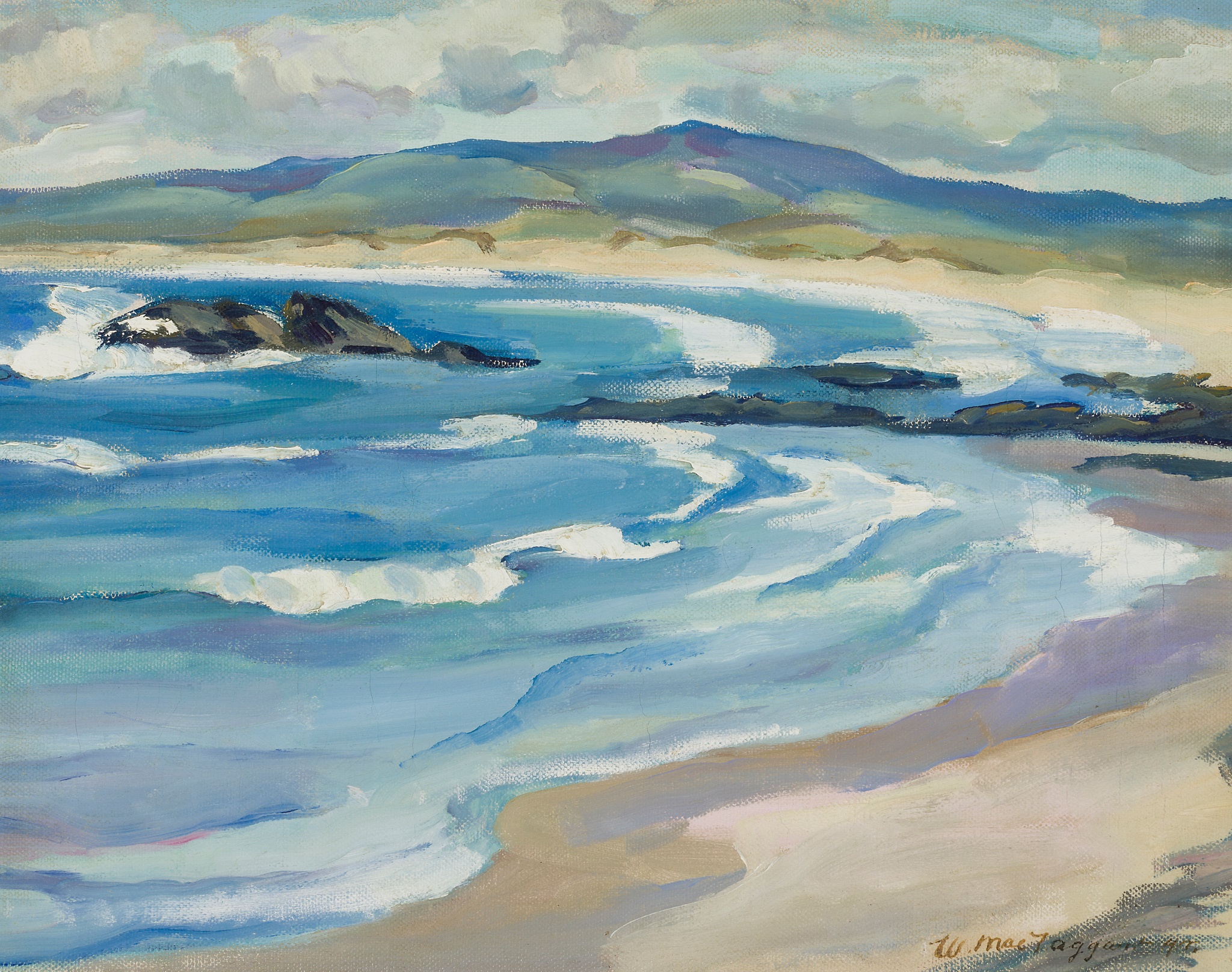 Note: In 1929 MacTaggart held his first one man show at Aitken Dott. In the exhibition there was one painting entitled 'Blue Sea, Machrihanish' and it is not fanciful to suggest that our painting is one and the same. A comparison with 'The Logie' exhibited at the MacTaggart retrospective and known to date from 1929 would tend to confirm the dating.