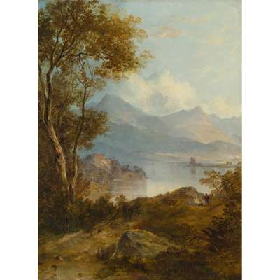 A HIGHLAND LOCH WITH DISTANT TOWER