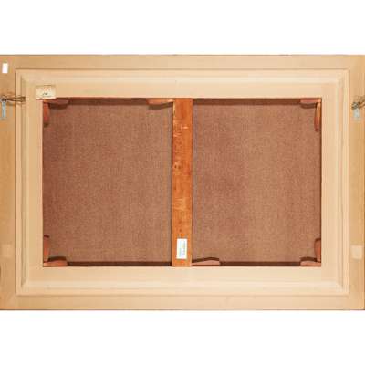 A WOODED RIVER LANDSCAPE WITH RESTING FISHERMAN