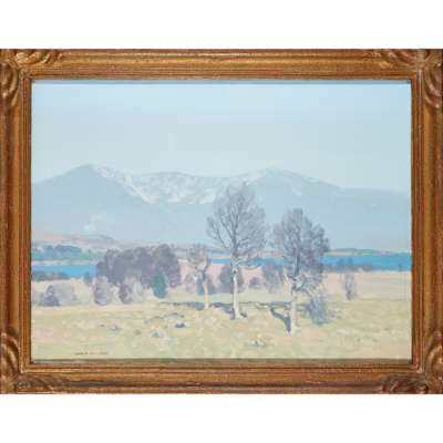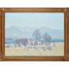 William Mouncey, a Kirkcudbright native, was advised by Hornel early in his career and spent most of his life in and around the town, capturing the essence of the coast and countryside on his canvases. Mouncey’s textured, dappling light, combined with the livestock and rural setting in Cattle Grazing in a Wooded Landscape is the epitome of a classic Kirkcudbright School scene. In this singular work, one can see the pervading style of the School and the artists’ collective affinity for light, colour, and admiration for the local landscape.