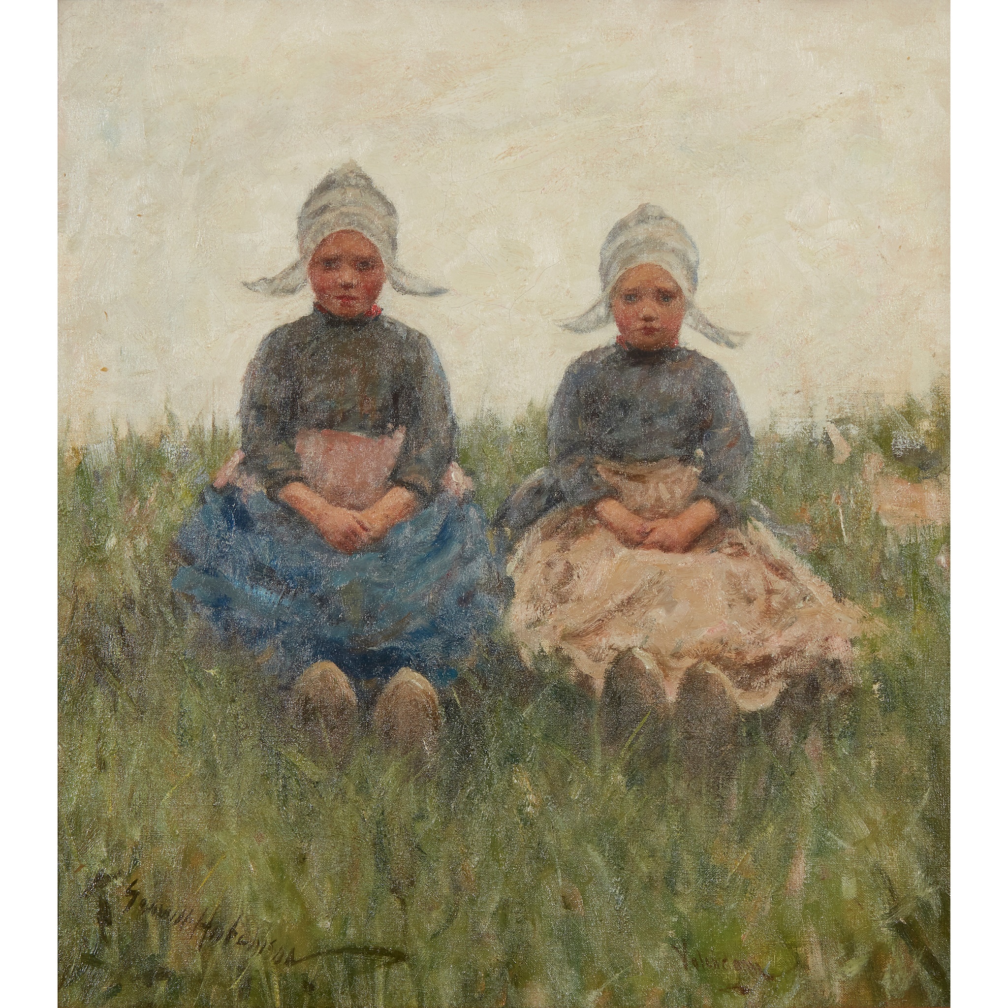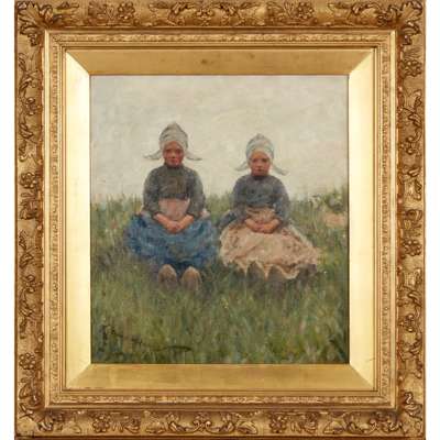 In On the Dunes, Holland and Dutch Coffee, Hutchison’s distinctive vision is applied to scenes of Dutch life. These are of particular interest given Hutchison’s enduring fascination with the Hague School. Hutchison visited Holland in 1905, and was profoundly inspired by the paintings he encountered there, which he felt captured the reality of daily rural life without idealisation or romanticisation. He was particularly struck by the work of Jozef Israëls (1824-1911), who painted scenes from the lives of fishermen, peasants or children. Upon his return to Scotland, he committed to painting en plein air with a looser, lighter, more painterly approach. He eschewed the sorrow that permeated Israëls’ painting in favour of more optimistic compositions rendered in lighter, softer tones. The selection of Hutchison paintings on offer demonstrate his innate ability to compose impressionistic strokes of colour into scenes that feel at once intimate and poignant.