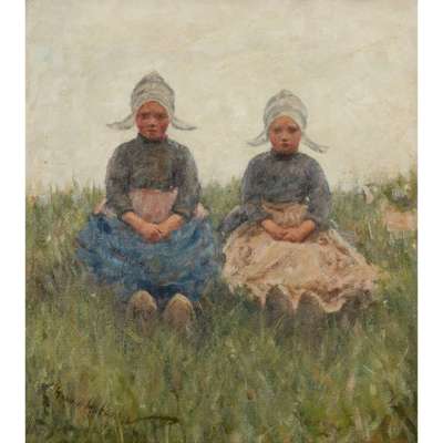 In his painting Robert Gemmel Hutchison strove for an essential truth: to capture a common humanity in his subjects. His charming compositions provide an insight into the late nineteenth and early twentieth-century taste for scenes of Scottish rural and domestic life. Dissatisfied with his apprenticeship as a seal engraver, the seventeen-year-old Hutchison secured a place at the Manufacturer’s School of Art in Edinburgh, where he studied under William McTaggart. Here, Hutchison cultivated an admiration for McTaggart that would endure for the rest of his life, and which in part inspired Hutchison’s loose painterly technique and interest in everyday rural life. Hutchison developed a successful artistic career – he exhibited regularly at the R.A. and R.S.A., and was elected to a number of prestigious institutions throughout the UK. He is remembered today as an important Scottish painter of the early twentieth century.