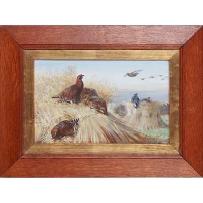 RED GROUSE AND BLACKCOCK AMONGST THE STOOKS