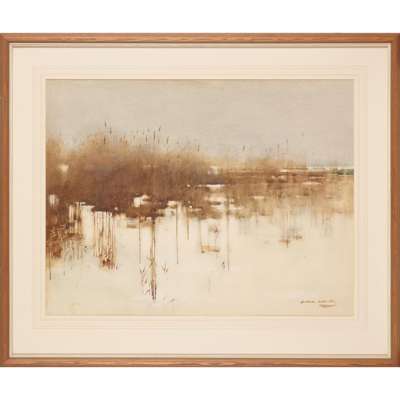 Note: Duddingston Loch was a constant source of inspiration for Melville, and as Kenneth McConkey points out in his 2015 National Galleries of Scotland exhibition catalogue, Melville's obituary in the Haddington Advertiser recorded that as a student at the R.S.A. Schools 'the reeds at Duddingston were a favourite sketching ground of his, and to gratify this taste he had to get up at five o'clock in the morning, so much work did he do during the day.'