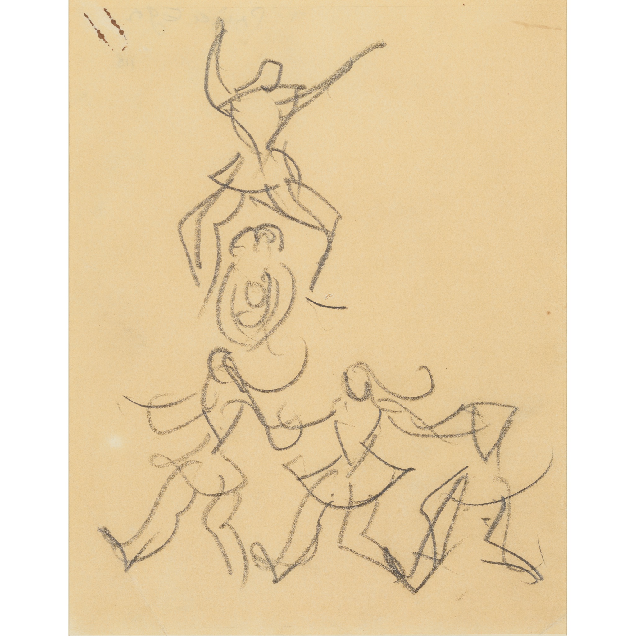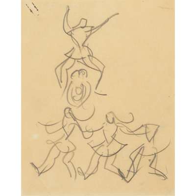 This drawing depicts sketches of figures from the Festival Ballet's production of Prince Igor held at the Alhambra Theatre, Glasgow, in 1951.