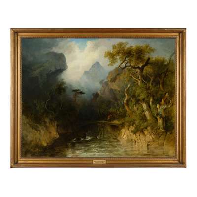 Signed and dated works by the Nasmyth daughters appear on the market infrequently, and Anne Gibson Nasmyth’s (1798-1874) paintings are particularly rare: she was less prolific than her sisters, with fewer than twenty works attributed to her. Nevertheless, she is recorded as having exhibited at the Royal Scottish Academy, Royal Society of British Artists, Royal Scottish Academy and British Institution, and her paintings reveal her to be a highly accomplished landscape artist with a predilection for stormy highland scenes. Anne joined her brother Patrick in London in 1829, where she and her sister Elizabeth established a further Nasmyth school of art at 9 Devonshire Street, Portland Place.