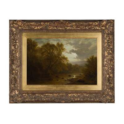 Signed and dated 1886, signed and inscribed verso, oil on canvas, and a companion, 'Summer Moonlight, Glencloy Burn, Arran', signed and dated 1886, watercolour and body colour