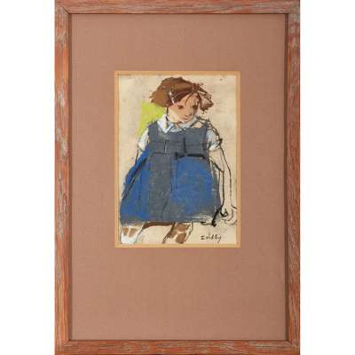 Works such as Children Playing Marbles (Lot 166) show how Eardley instinctively empathised with childhood emotions, as a group of youngsters are absorbed in the drama of a competitive game. In The Blue Pinafore (Lot 167) a child is caught in moment of contemplation. Her facial expression is depicted with tenderness and her unselfconscious pose speaks of innocence, whilst the thick application of pastel – sometimes highly coloured – signifies form and the artist’s energetic technique.