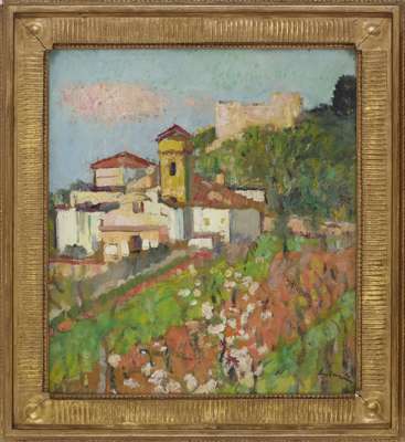 Les Environs de Florence was one of five works from the Tuscan trip that were included in the landmark exhibition Paintings by S. J. Peploe, F. C. B. Cadell and Leslie Hunter (working title ‘Three Scottish Artists’) mounted at the Leicester Galleries, London in 1923. This was the first time the work of the three artists was presented together and sowed the seed of the concept of them as a group, soon to be with the addition of J. D. Ferguson, which was to be cultivated over the following years by the Glasgow-based dealer Alexander Reid and his son, A. J. McNeill Reid.