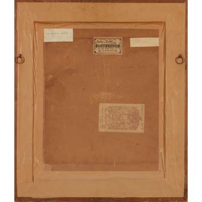 Venice is one such work, likely to have been painted on the spot on its modestly-sized board, which was easy to transport when on the hunt for picturesque scenes to capture in paint. It bears a label on the reverse from the celebrated artists’ supplies merchant Emillio Aickelin of Via 22 Marzo in the city. In this case, Cadell was probably based on the Riva degli Schiavoni, looking south at the boats seen at full sail in the Canale di San Marco and over to the Isola di San Giorgio Maggiore, with the campanile outlined to the left thought to be that of the island’s church.