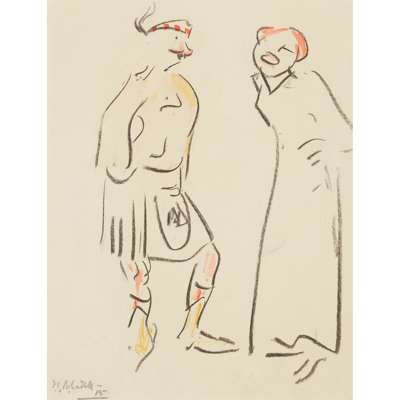 The Health Inspection, A Couple in Conversation and Kilted Soldier and Lady come from Cadell’s celebrated Jack and Tommy series of works on paper of 1915, in which he captured aspects of life in the army and navy during his military training.
