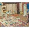 Redpath’s training at Edinburgh College of Art, where she was an outstanding student, and her direct exposure to modern French art during the 1920s and early 1930s, particularly that of Henri Matisse and Eduoard Vuillard, also contributed to the achievements realised in works such as Interior with Patterned Rug. From a slightly raised, oblique viewpoint, Redpath orchestrated a complex composition of white painted furniture, carefully rendered still life objects dispersed across the image, the patterned rug which takes up almost half of the canvas surface area and a deft use of colour to draw the eye around the room.
