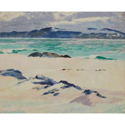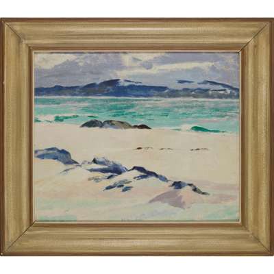 Iona, North Shore epitomises the inspiration Cadell found on the Hebridean island of Iona, as well as his friendship with the Glasgow shipowner George W. Service (1864-1940), who acquired the painting from the artist and from whom it has descended to the present owner.