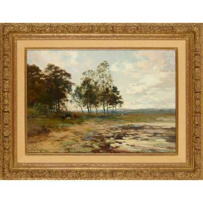 Joseph Milne was particularly fond of painting cattle and sheep in rural settings. From his known, dated paintings, there are cattle grazing examples from 1895, 1897, 1903 and various other undated examples, such as By the Loch. The specific locations of these landscape pictures are rarely recorded.
