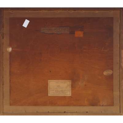 All three works bear Alex. Reid & Lefèvre Ltd labels. The company was a merger of Alexander Reid’s Glasgow-based business, run by his son A. J. McNeill Reid following his father’s retirement in 1925 and that of the London-based Ernest Lefèvre in 1926. It continued to champion Hunter’s work for the rest of his life and in 1932 mounted a Memorial Exhibition in its Glasgow gallery in his honour.