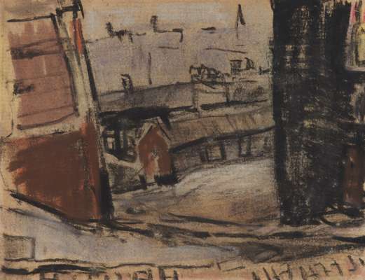 Neil was known to have struggled greatly after the loss of his stalwart friend Eardley to cancer, even being sectioned at one point in Montrose Psychiatric Hospital. He was dependent for a time on the charity and care of members of his circle, notably the artist Carole Gibbons, as well as the local medical community. Lyon & Turnbull are delighted to present to market select works from one of Eardley’s sketchbooks, gifted by Neil to a caring local doctor in Glasgow in the 1960s who gave him room and board during a breakdown. The sketchbook has been much treasured by descendants within the doctor’s family. It gives a wonderful insight into Eardley’s oeuvre, containing representations of virtually every subject one might associate with her: from studies of children to cityscapes and shorelines; all excellent examples of her astute observational skills and intuitive mark-making ability, as well as her astounding consistency of quality.