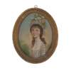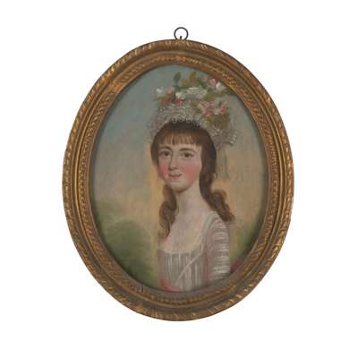 HEAD AND SHOULDER PORTRAIT OF A YOUNG GIRL WITH FLOWERS IN HER HEADDRESS