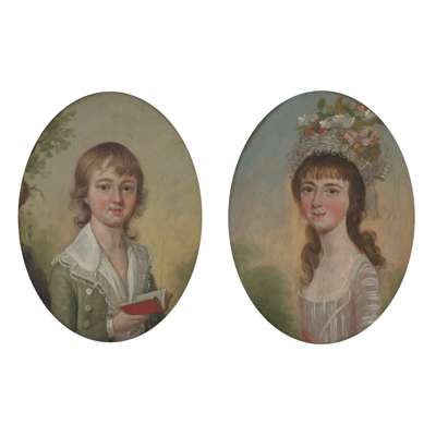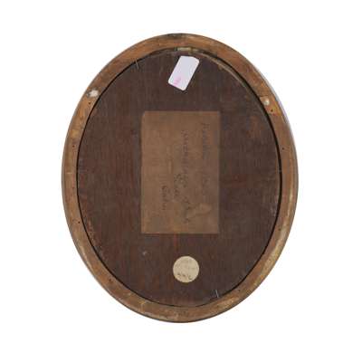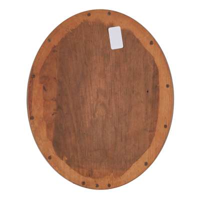 Oil on panel, oval,