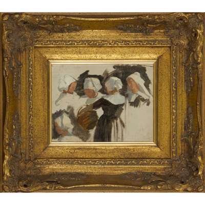 Both Gauguin and Brough implemented the ‘Synthetist' style: flat planes of harmonious colour and rhythmic composition over more naturalistic representation. Brough’s Brittany work firmly acknowledges Syntheticism but is tempered by an observational grounding, owing to his fascination with Breton lives and customs. His paintings from this period constitute a sensitive record of a traditional people, rendered with an innovatively modern, almost post-Impressionist eye.