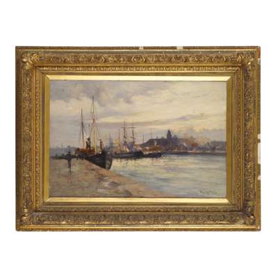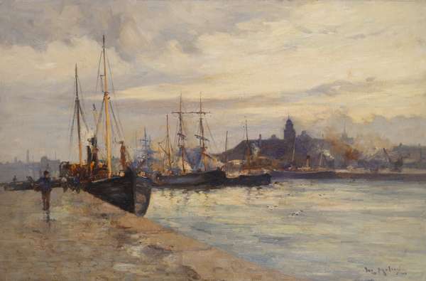 Milne's dated paintings of boats and ships range from fishing boats at Buckhaven in 1880, at the beginning of his career; ships at Tayport in 1891, at Gateshead in 1897 and other dated harbour pictures which have lost their original titles. Other similar, undated works range from harbours at Leith and Perth, barges on the Thames and boats at Tarbet, Loch Fyne.