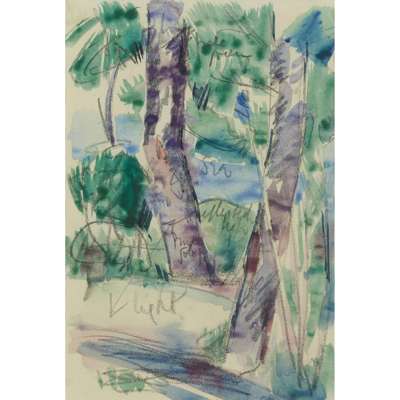 Mademoiselle E is an example of the elegant women who caught Fergusson’s eye, often in cafés, whilst he was living in the French capital between 1907 and 1913. Rarely without a sketchbook and a conté pencil or two in his pocket, he would sketch at speed to capture key facial features and elements such as a fashionable hat, by which to conjure up a character on the page. Samuel John Peploe and his Wife Margaret Mackay Walking in the Luxembourg Gardens is a testament to Fergusson’s great friendship with his fellow Colourist. Peploe and Margaret joined him in Paris between 1910 and 1912, where - according to Fergusson - Peploe declared that they had ‘some of the greatest nights of his life’.