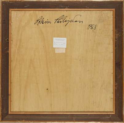 Signed and dated 1988 verso, inscribed with a handwritten label also verso ‘To Jimmy and Margaret with many good wishes. Robin’, oil on board