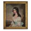 HALF-LENGTH PORTRAIT OF MISS MAITLAND IN WHITE DRESS WITH BLUE SASH