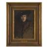 The current oil sketch is the likely result of Lavery’s first encounter with the performer. Essentially, swift notes of this type familiarised the artist with every new personality and were often gifted to a sitter at the end of their sittings. In this case the small full-face version was rejected in favour of Brown-Potter’s striking profile.