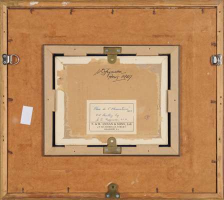 It is thought that Ritchie acquired Place de l’Observatoire when it was included in Fergusson’s last lifetime solo exhibition, held at the Annan Gallery, Glasgow in 1957. It consisted of 43 paintings, covering the artist’s career from Tandstickers (Toothpicks) of 1898 to the recently completed Fruit and Flowers at ‘La Fauvette’ of 1957. Place de l’Observatoire was number 33 and can be seen in installation photographs of the exhibition, held in the Fergusson Archive of Culture Perth & Kinross. It was presented in a similar, if not the same, frame as it is currently, as part of an arrangement of six paintings, including the related Boulevard Raspail of 1907, A Pink Rose of 1902 and images of Royan and Cassis.