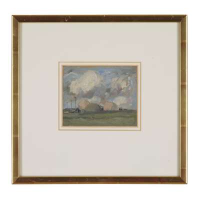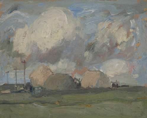 Sunlight in the Woods, Peebles, Midday, Peebles and The Haystacks date from the beginning of Fergusson’s career. Having spurned the traditional training available at the Trustees’ School of Art in Edinburgh, he determined to educate himself, including during spells at the Académies Julian and Colarossi in Paris. These three small-scale works are typical of those he painted in the French en plein air manner, responding directly to the rural scenes before him.