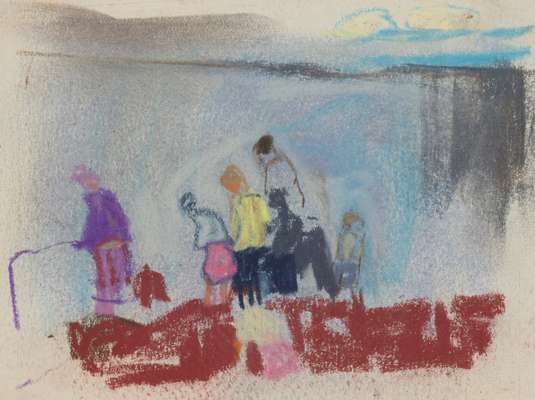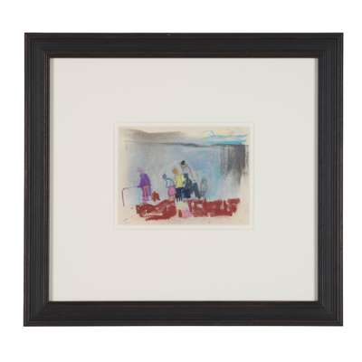 Neil was known to have struggled greatly after the loss of his stalwart friend Eardley to cancer, even being sectioned at one point in Montrose Psychiatric Hospital. He was dependent for a time on the charity and care of members of his circle, notably the artist Carole Gibbons, as well as the local medical community. Lyon & Turnbull are delighted to present to market select works from one of Eardley’s sketchbooks, gifted by Neil to a caring local doctor in Glasgow in the 1960s who gave him room and board during a breakdown. The sketchbook has been much treasured by descendants within the doctor’s family. It gives a wonderful insight into Eardley’s oeuvre, containing representations of virtually every subject one might associate with her: from studies of children to cityscapes and shorelines; all excellent examples of her astute observational skills and intuitive mark-making ability, as well as her astounding consistency of quality.