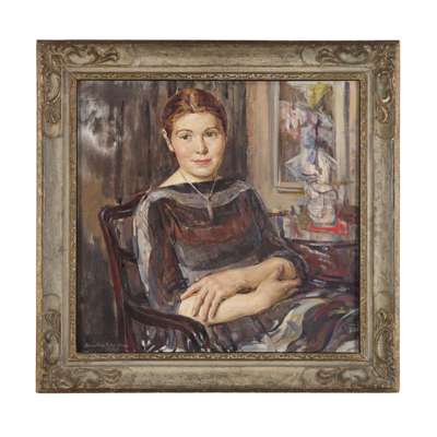 The sitter for this portrait was Elspeth Bates (née Cormack). She sat for Johnstone over a period of six days in late December 1957 to early January 1958.