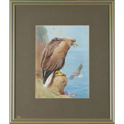 Note: Archibald Thorburn returned to the Highlands of Scotland to study and record the native wildlife throughout his life. His preferred spot was the Forest of Gaick in Invernesshire, a dramatic and ever-changing habitat populated by diverse creatures. From warbler to eagle, Thorburn’s evocative watercolours are replete with technical prowess and keenly-observed detail, while also conveying something of his subject’s temperament. It is these qualities that distinguish Thorburn as one of the great ornithological painters.