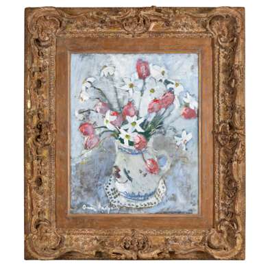 Note: In a review of the 1948 Royal Academy annual exhibition, the art critic of The Sunday Times declared 'Anne Redpath's still lifes stand out like patches of blue sky on a grey day' (as quoted in Patrick Bourne, Anne Redpath 1895-1965, Edinburgh 2004, p.46). Such is the case with Still Life Tulips and Lilies. It is infused with the joie de vivre and technical dexterity which made her a master of the genre.