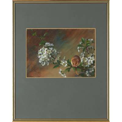 In 1902 Thorburn moved to Hascombe, Surrey, where he lived with his wife Constance. He refused to adopt electric lighting, preferring to paint in natural light or using lamps and candles to illuminate his work. In 1930 it was reported that ‘as a painter he relies solely on natural light, working long hours indeed in the summer months but much shorter ones during the brief days of winter. Just occasionally he resorts to the use of his oil lamps, especially if drawing mice in the dimness of his garden shed.’ For the rest of his life Thorburn journeyed to the Highlands to sketch and make notes, before returning to his Surrey studio to complete his compositions.