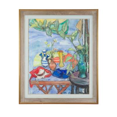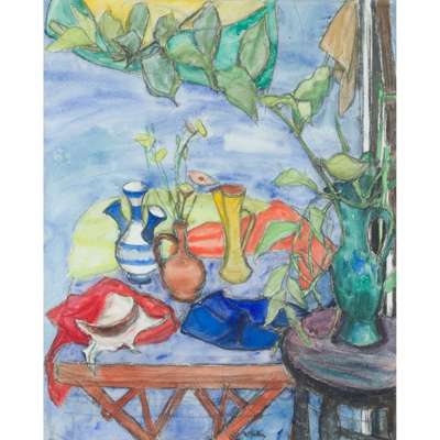 STILL LIFE WITH SOLOMON'S SEAL ON BLUE GROUND